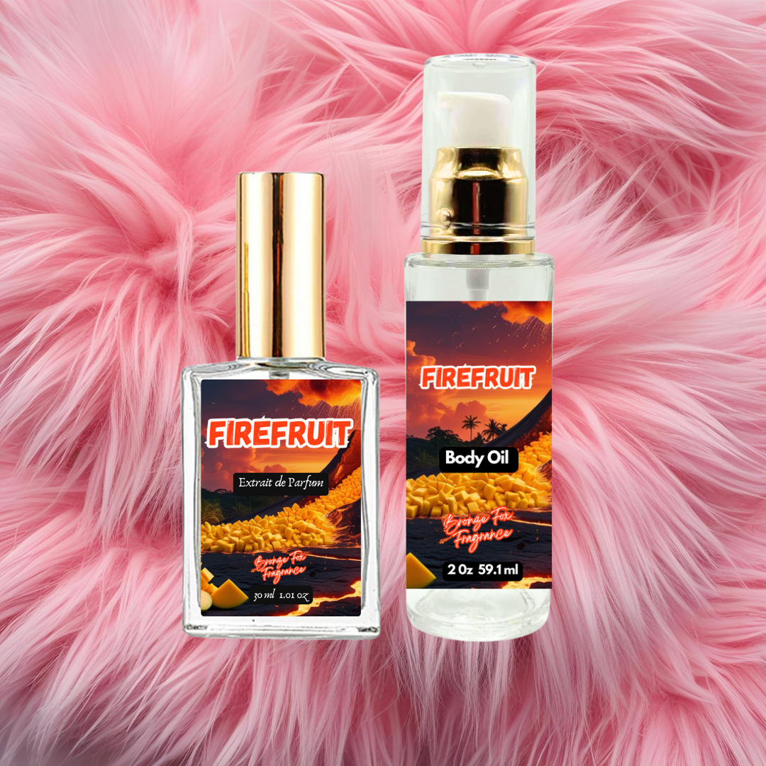 Firefruit ignites with a burst of sun-ripened mango and zesty citrus, brightened by playful pink berries and warming ginger. Wrapped in creamy jasmine, blue coumarin, and dry woods, and grounded by an exotic base of smoky oud, nagarmotha, amber, and soft musk. Available as a hydrating body oil, a lingering extrait de parfum, a silky dusting powder, or a rich body butter—perfect for those seeking a daring, summer-night allure.