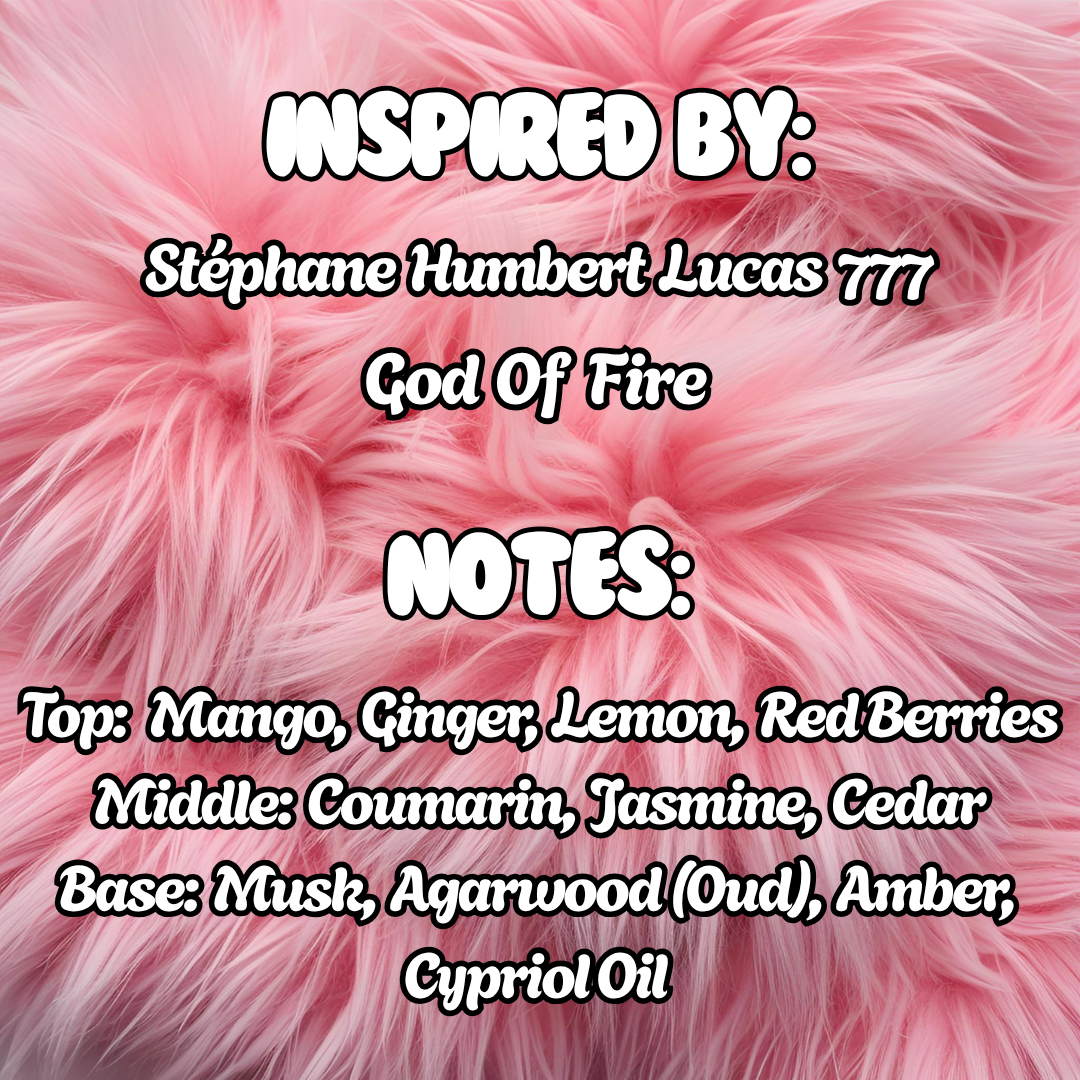 For external use only. Avoid contact with eyes. Discontinue use if irritation occurs. Always patch-test before full use. Not affiliated with or associated with Stéphane Humbert Lucas, God of Fire, or 777.