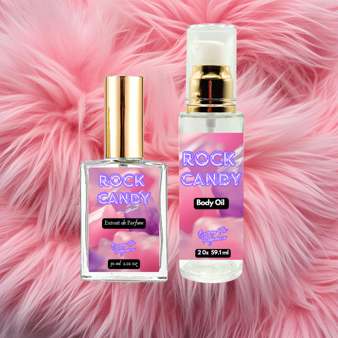 Rock Candy is a shimmering burst of candy-coated fun—juicy, fluffy, and utterly addictive. Whether worn as a silky body oil, rich extrait perfume, creamy body butter, or soft dusting powder, this scent channels the joy of your favorite childhood treat (with a cheeky grown-up twist).
