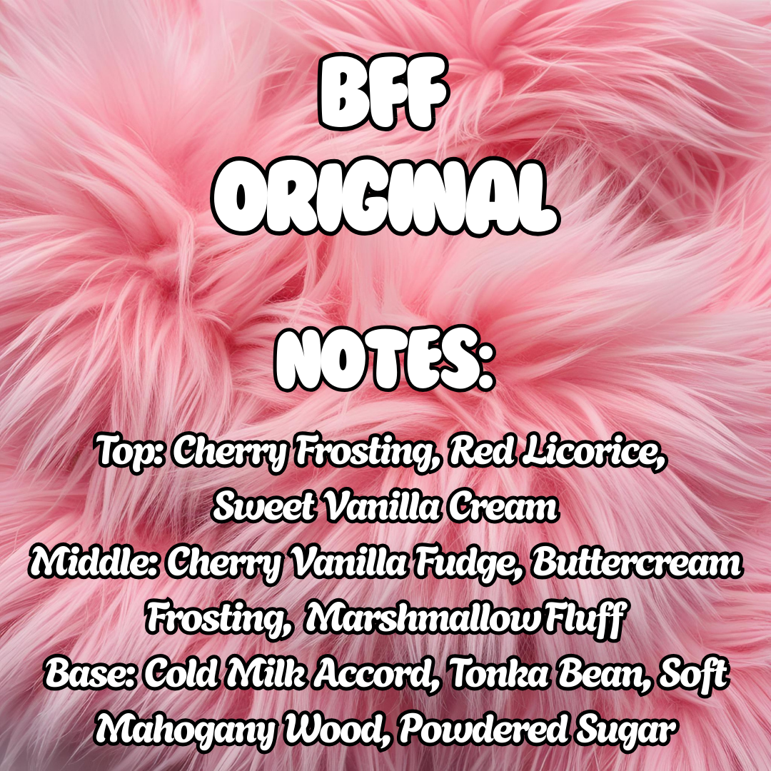 It opens with cherry frosting, red licorice, and sweet vanilla cream, playful and candy-bright. The heart deepens into cherry vanilla fudge, buttercream frosting, and marshmallow fluff, rich and gooey. Finally, the base settles into a cool glass of cold milk accord, tonka bean, soft mahogany wood, and powdered sugar, leaving behind a creamy, dreamy veil of sweetness.